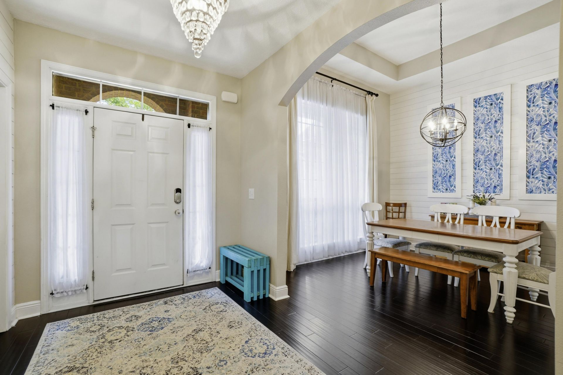 Welcome to this beautifully maintained home in Orchards at Hammock Bay, where modern style meets everyday functionality. This thoughtfully designed property features three bedrooms plus a versatile flex room, large, laundry room, an eat in kitchen as well as a beautiful dining room. At the center of the home, the spacious great room creates a warm and inviting gathering space, highlighted by a stunning shiplap fireplace. The open concept layout flows seamlessly into the spacious kitchen. The primary bedroom has a great sitting area or office nook. The generously sized back yard offers an oasis with a screen porch,paver patio and custom built pergola overlooking a the lake. New HVAC installed 2025. Hammock Bay offers pools, fitness, trails, dog park and many more amenities.