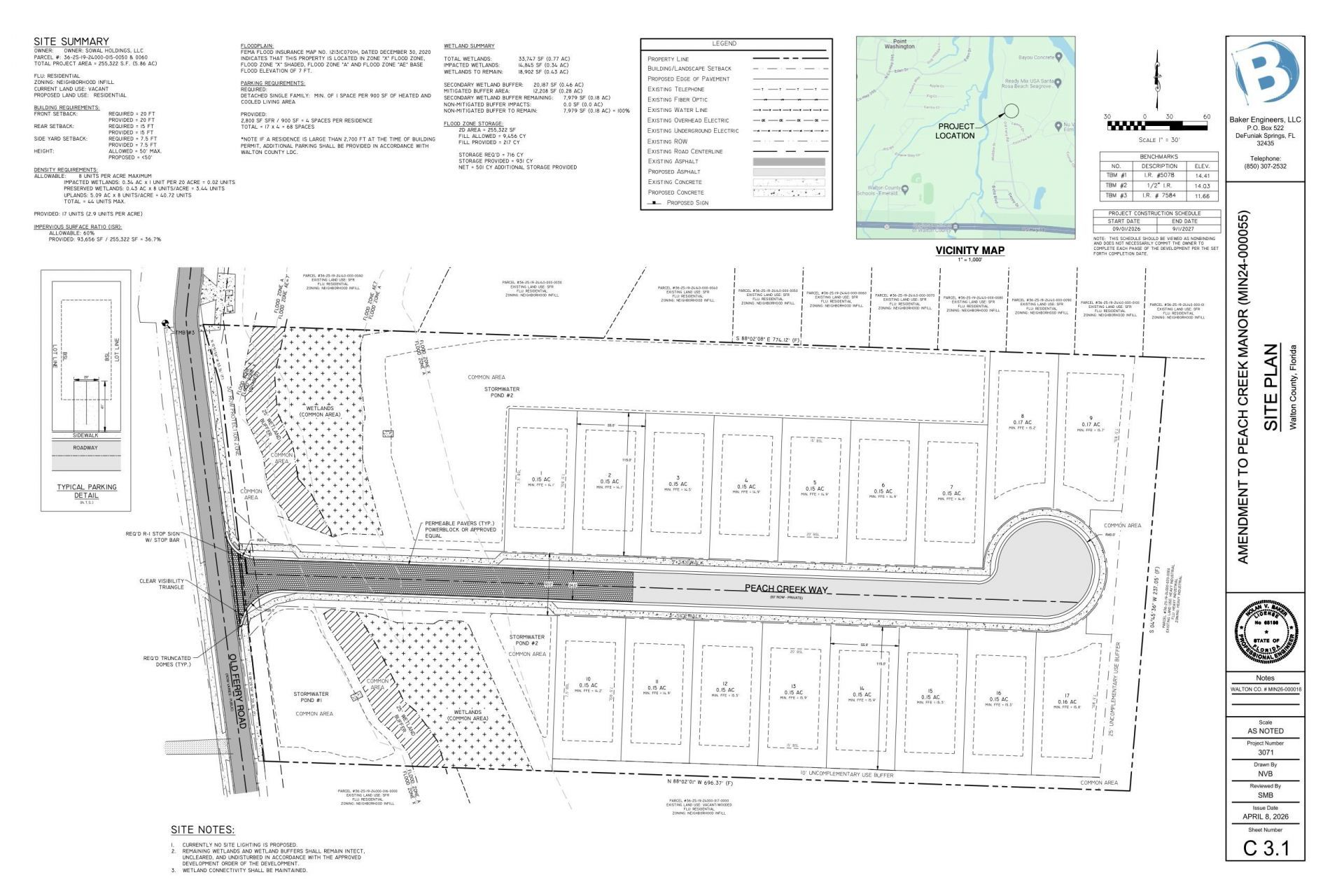 Completely redesigned with additional acreage assembled (5.86 acres total) allowing for larger lots and dramatically reduced horizontal construction costs. Reintroducing 'Peach Creek Manor' - a subdivision consisting of 17 single-family homesites 55x115 feet each - strategically located between the built-out neighborhoods of Peach Creek & Holley Grove in the heart of Santa Rosa Beach.The entirety of Old Ferry Road has been paved and fully improved. All utilities, sewer, & water have been extended past the property making tapping-in straightforward. Development Order will transfer and convey with purchase & approved submission documents are available upon request.